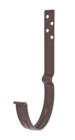 Крюк окрашен в коричневый цвет RAL 8017, что позволяет ему гармонично вписаться в любой экстерьер и сочетаться с другими элементами водосточной системы.