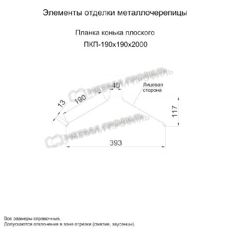 Планка конька плоского 190х190х2000 NormanMP (ПЭ-01-7024-0.5)