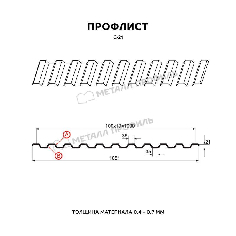 Выбирая Профлист Металл-Профиль С-21 ECOSTEEL® 0.5 мм Кирпич, вы получаете надежный и качественный материал, который прослужит вам долгие годы.
