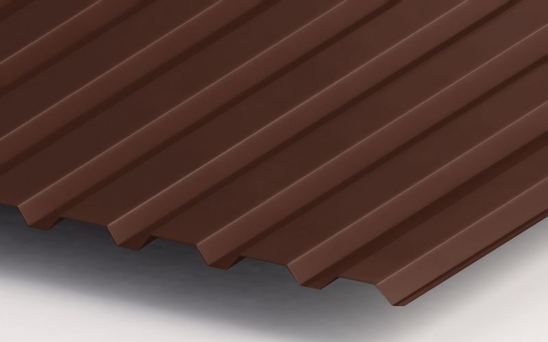Цвет Ral 8017 шоколад придает кровле элегантный и стильный вид, который будет гармонировать с любым дизайном здания. Благодаря специальному покрытию материал легко моется и не выгорает на солнце.