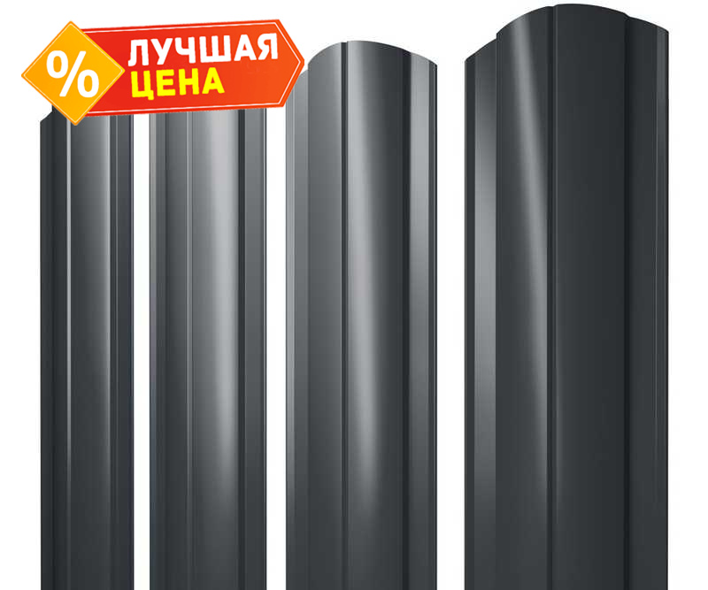 Штакетник Круглый фигурный Grand Line 0,5 Quarzit PRO Matt RAL7016 Антрацитово-Серый