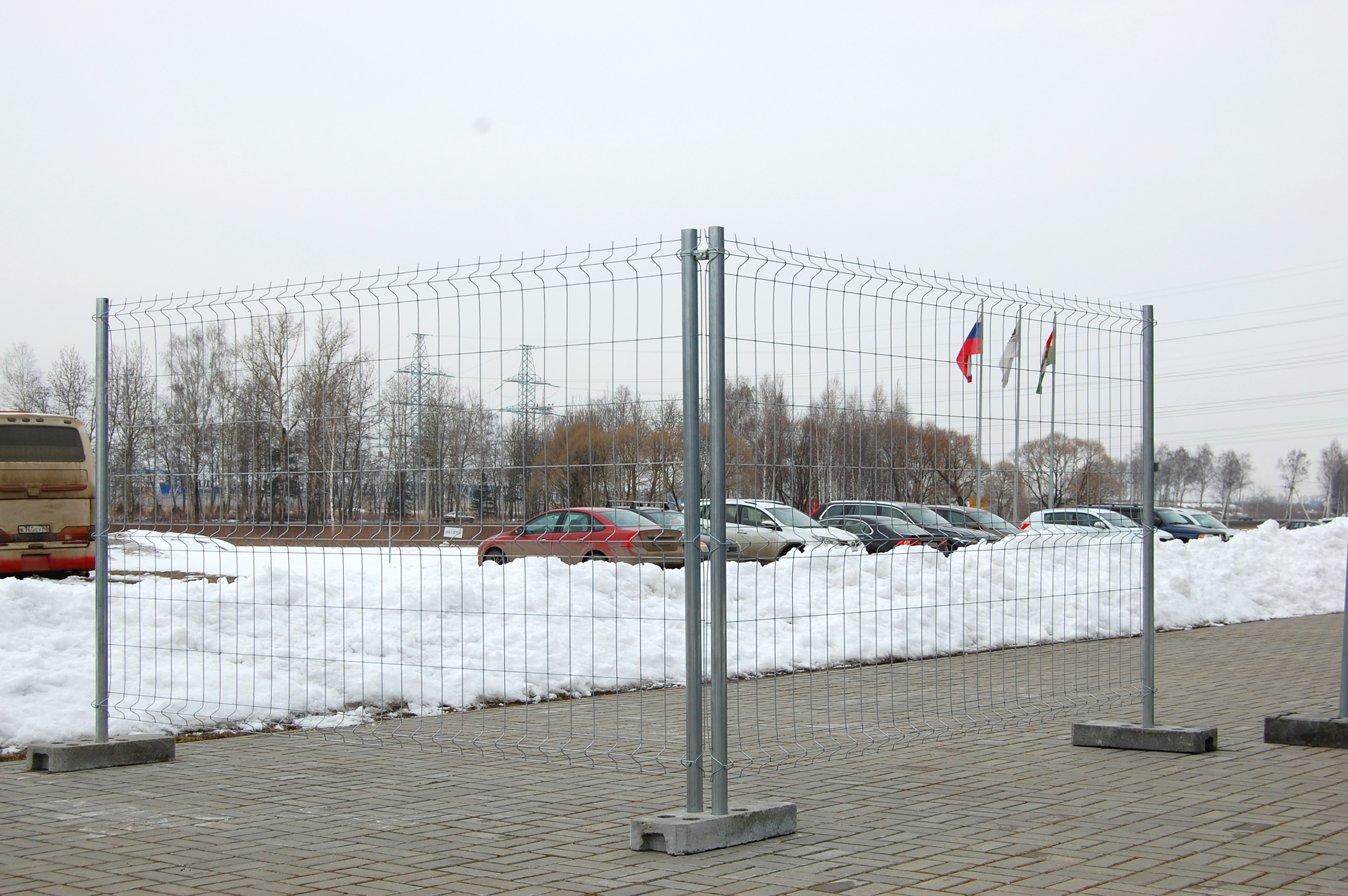 Основание бетонное обеспечивает высокую устойчивость конструкции временного ограждения.